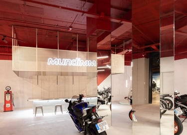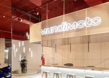 Mundimoto és una innovadora plataforma de compra i venda de motos de segona mà que ha confiat en nosaltres per dur a terme el disseny de la seva nova botiga d'exposició al centre comercial X-Madrid.